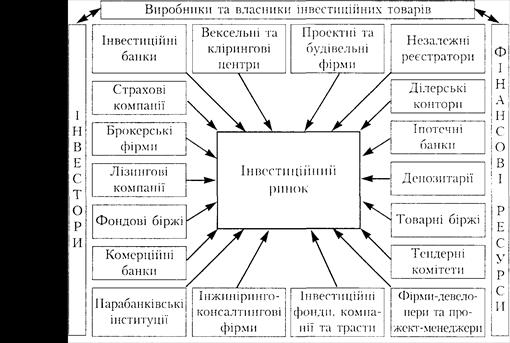 Інвестиційна діяльність завжди починається з ринку, оскільки заощаджень та поточних доходів потенційному інвестору, як правило, не вистачає. Крім цього, інвестор завжди намагається залучити акціонерний капітал у справу з метою зменшення ризику та розподілу відповідальності. На рисунку 2.1 наведена схема ринкових відносин, суб'єктом яких є інвестор