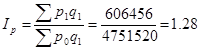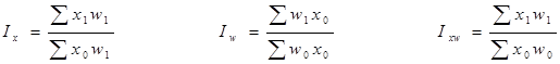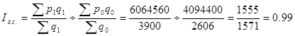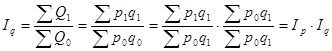 Зведені індекси показують результат спільної дії чинників якісного (ціна) і кількісного (кількість продажу продукції). Показує зміни обсягу виробництва продукції у звітному періоді порівняно з базовим.