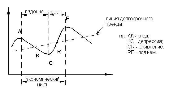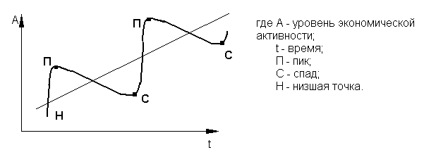 Экономическим циклом называется промежуток времени между двумя одинаковыми состояниями экономики. Цикл можно рассматривать так же, как волнообразные колебания вокруг положения равновесия различной длительности.
