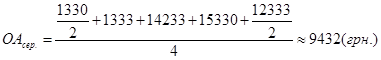 . Вартість основних фондів торгівельного призначення станом на початок року 33300 грн., станом на кінець року 323300 грн. Залишки оборотних засобів торгівельного підприємства в 2005 році складали станом: на початок року 13300 грн., на початок другого кварталу 13330 грн., на початок третього кварталу 14233 грн., на кінець року 12333 грн. Питома вага товарних запасів у вартості оборотних засобів складає 40%.