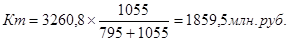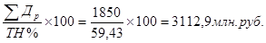 = 4962,9 млн. руб. × 0,6287 = 3120,2 млн. руб.