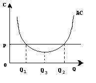 , якому відповідають мінімальні середні витрати, фірма отримує максимальний прибуток на одиницю продукту. Проте чи означає це, що точка Q3