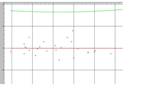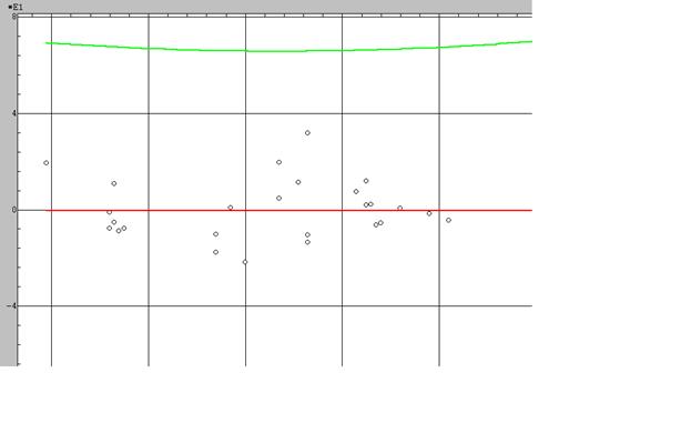 Строим статистику распределена по закону Фишера-Снедокора с числом ст. свободы n в числители и N-n-1 в знаменатели. (воспользуемся данными таблицы 1)