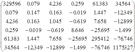 Матрица Х имеет размерность 6х53, в первой строке стоят единицы.