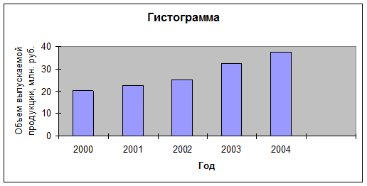 На примере промышленного предприятия проведен анализ динамики объема выпускаемой продукции за период с 2000 г. по 2004 г. (включительно).