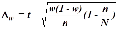 Расчет по формуле (19) предельной ошибки выборки для доли: