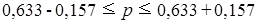 Определение по формуле (20) доверительного интервала генеральной доли: