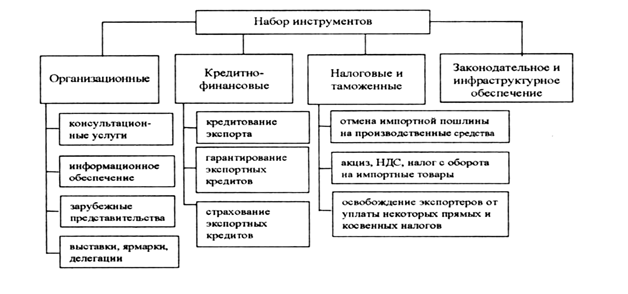 В каждой стране есть собственная система государственного стимулирования экспорта, включающая определенный набор инструментов (см. рисунок 1).