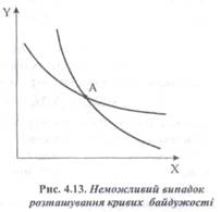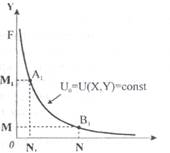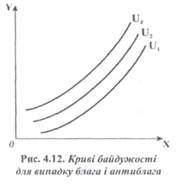 Будь-яка комбінація двох благ може бути показана точкою в прямокутній системі координат. З'єднавши точки з такими комбінаціями товарів, які забезпечують однаковий рівень задоволення потреб, ми одержимо криву байдужості.