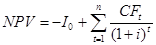 У випадках, коли проект передбачає значні первісні вкладення коштів І0, розрахунок NPV можна провести за формулою: