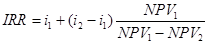 і2 - ставка дисконту, при якій NPV = NPV2 (NPV2 < 0).