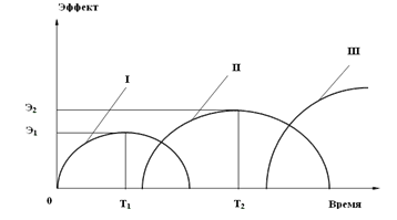 Важнейшими рыночными индикаторами при выборе вида производимой продукции и составлении номенклатурного плана служат показатели эффективности и обновляемости выпускаемых товаров. В соответствии со своим жизненным циклом каждый вид продукции достигает в известный период предельной эффективности, и поэтому требуется периодическое обновление номенклатуры или ассортимента товаров и услуг (рис.).