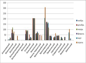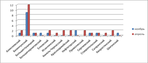 - значительный перепад цен произошел в Безенчукском районе, там в декабре и январе произошел рост цен, почти на 50 тысяч рублей, затем произошел опять спад цен практически на уровень ноября;