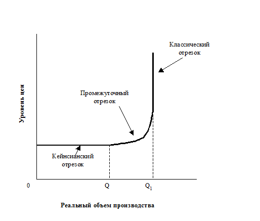 Если начинается инфляция, обусловленная ростом издержек, то при существующем уровне совокупного спроса реальный объем продукции сократится. Это значит, что рост издержек вызовет резкое повышение цен и при данных общих расходах можно будет купить на рынке только часть реального продукта. Следовательно, реальный объем производства уменьшится, а безработица вырастет.