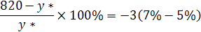 Уровень фактической безработицы в стране составил 7%, а ее естественный уровень 5 %. Если фактический объем ВВП равен 820 млрд. евро, а коэффициент Оукена равен 3, тогда величина потенциального ВВП составит…