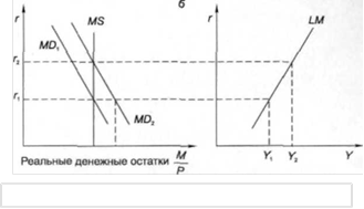 приводит к увеличению спроса на реальные денежные остатки и сдвигу кривой MD1
