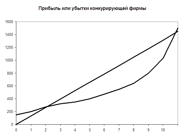 Будет ли фирма производить продукт в данных условиях? Очевидно, да, так как делая это, она имеет возможность получать прибыль уже начиная с третьей единицы выпуска, её доход превысит общие издержки и появится прибыль. Она будет возрастать и при 9 единицах выпуска достигнет максимума (+299). После чего дальнейший рост выпуска продукции будет давать уменьшение прибыли из-за быстрого темпа роста издержек.
