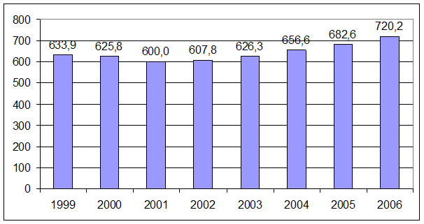 В российской практике существование малого предпринимательства было разрешено в 1988 г. Таким образом, как самостоятельное общественно-политическое и социально-экономическое явление малое предпринимательство в нашей стране существует уже почти 20 лет и в настоящее время переходит от стартового к этапу глубоко и качественного развития. Данные по изменению количества малых предприятий в 1999 – 2006 годах приведены на рис. 2.1.