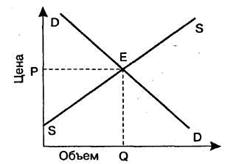 До настоящего момента спрос и предложение рассматривались нами в отдельности. Однако в реальности эти две составляющие рынка неразделимы. Взаимодействие данных категорий порождает на рынке равновесную цену и равновесный объем товара, то есть достигается рыночное равновесие.