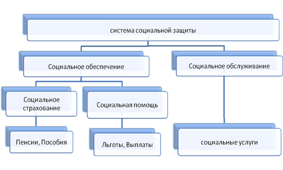 Таким образом, под социальной защитой понимается защита человека либо определенных групп населения от социальных рисков, связанных с утратой трудоспособности и/или потери дохода, необходимого для обеспечения средств к существованию. К таким рискам относятся: беременность и роды, содержание детей, болезнь и инвалидность, старость, смерть человека, потеря кормильца, безработица, трудовое увечье.