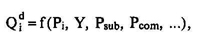 В общем виде зависимость спроса от различных факторов, или функция спроса, может быть выражена уравнением [11]: