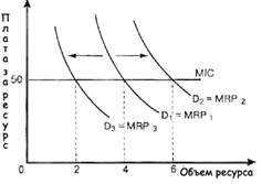Кроме цены данного ресурса на спрос ресурсов влияют и другие факторы, которые вызывают сдвиг всей кривой спроса на ресурс вправо или влево. Основными являются: спрос на продукцию фирмы. Чем выше спрос на продукцию, тем больше спрос на ресурсы; цена и объемы предлагаемых ресурсов-заменителей и комплиментарных ресурсов; технологическими изменениями, влияющими на предельный продукт ресурса. Улучшение в технологии увеличивает предельный продукт данного ресурса, а кривая предельного дохода от продукта этого ресурса сместится вверх.