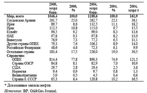 Таблица 2.8. Структура мирового экспорта нефти и нефтепродуктов в 2004г.