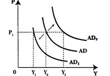 будет происходить по-разному. В кейнсианском случае, когда цены и заработная плата жестки, возвращение в точку равновесия E1