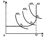На рис. 4 изображены три возможные ситуации макроэкономического равновесия (точки E1