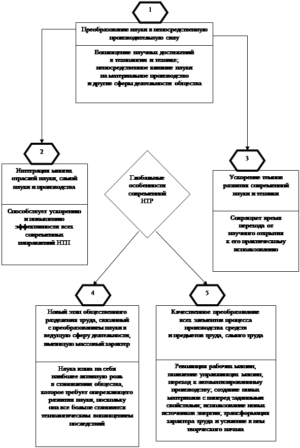 Содержание современной НТР наиболее полно раскрывается через ее особенности, представленные графически на рис.1.