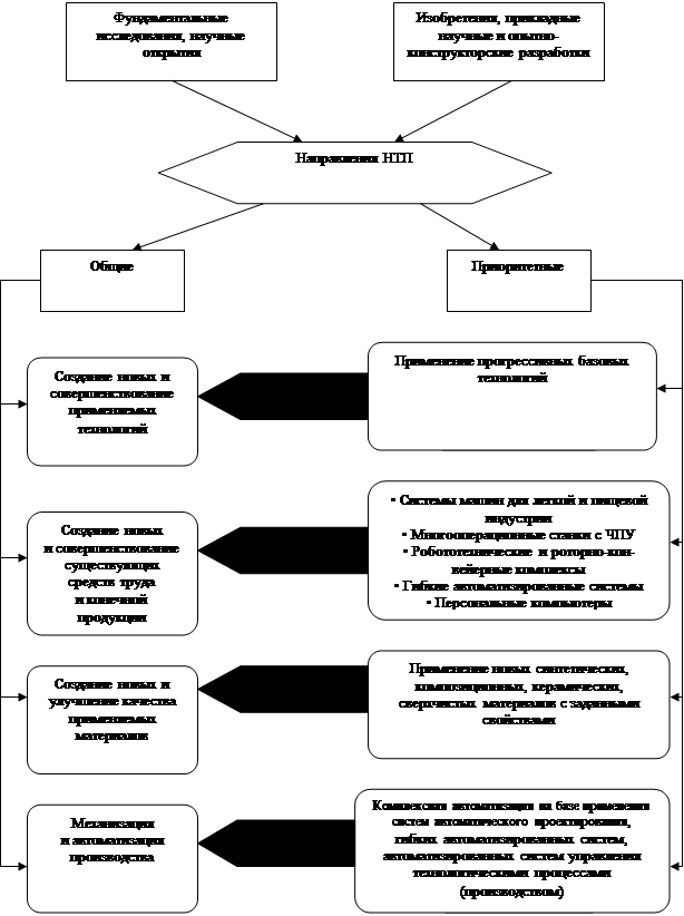 Опираясь на сущность, содержание и закономерности современного развития науки и техники, можно выделить характерные для большинства отраслей нapoдногo хозяйства общие направления НТП, а для каждогo из них приоритеты по меньшей мере на ближайшую перспективу (рис.2).