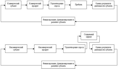 Рис. 1. Схемы цикличности функционирования коммерческого и некоммерческого субъектов