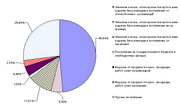 Рис. 6. Структура доходов НКО, работающих в области общественной деятельности[33]