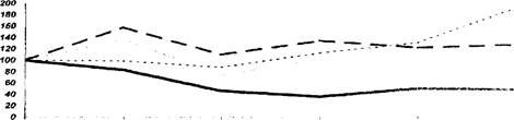 3. Инициируются процедуры банкротства в отношении действующих, но неэффективных хозяйств. Это предприятия 4 и 5 группы по показателям финансово-экономического состояния (табл. 2.4). При этом применение ликвидационных процедур, по нашей оценке, целесообразно в отношении 28 хозяйств республики (5 группа). Для предприятий 4 группы (47 хозяйств) более оправдано введение реорганизационных процедур, направленных на постановку в неплатежеспособных хозяйствах эффективного менеджмента. Однако окончательное распределение проблемных предприятий по этим двум группам не должно осуществляться до процедуры банкротства. С одной стороны, досудебное разделение хозяйств на группы нарушает права этих предприятий, с другой - это может породить коррупцию.