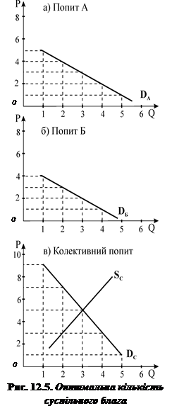 (рис. 12.5). Попит на суспільне благо визначається як сума цін, які всі споживачі (А,Б)