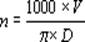 n=(1000*36) / (3,14*54) = 212 об/мин