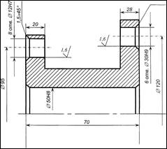 Операція - обробка за кресленням з припуском на шліфування за зовнішнім діаметром, нарізування різьби з двох боків.