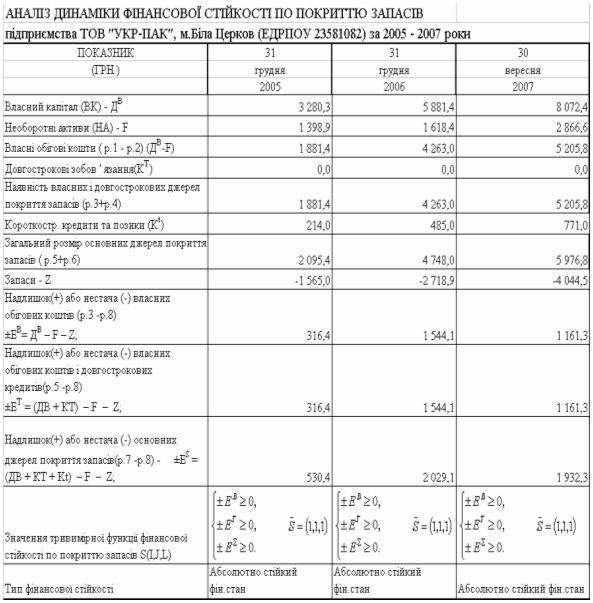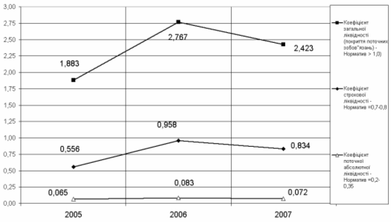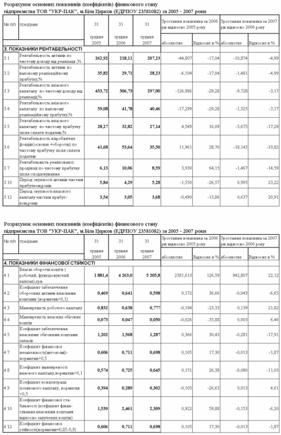 Показники ліквідності, платоспроможності, фінансової стійкості та рентабельності роботи ТОВ "УКР-ПАК" у 2005 –2007 роках
