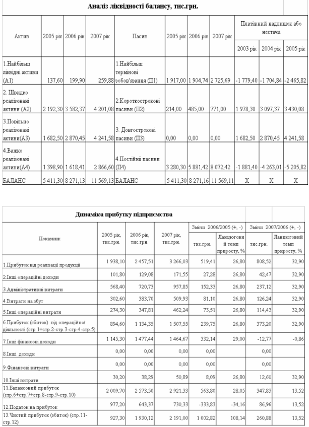 Баланси та звіти про фінансові результати діяльності ТОВ "УКР-ПАК" за 2005 –2007 роки