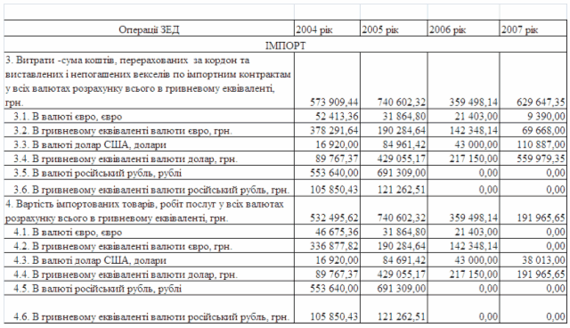 Інформаційні дані про обсяги експортно-імпортних операцій ТОВ "УКР-ПАК" у 2005 –2006 роках