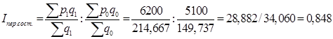 4. Находим среднее значение фондовооруженности труда по формуле средней гармонической взвешенной: 50,9/5,994=8,491 тыс. руб.