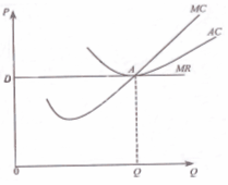 За ціною P4, прибуток буде максимальним при обсязі виробництва q4 (фірма матиме нормальний економічний прибуток). А точка D на кривій МС (точка незбитковості) належить кривій пропозиції. Зазначимо, що при цьому максимум (додаткового) прибутку дорівнюватиме нулеві, оскільки ціна P4 дорівнює мінімуму середніх загальних витрат (Р2=AR = MR = min АС).