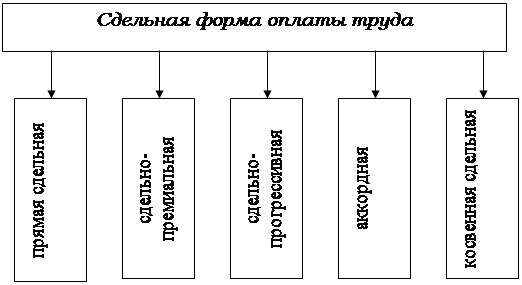 Сдельная форма оплаты труда представлена рядом систем, учитывающим особенности, свойственные различным производственным процессам. Она основана на определении сдельных расценок с учетом разряда выполняемой работы и тарифной ставки первого разряда. Сдельная заработная плата рабочих основана на оплате труда в прямой зависимости от его результатов, выраженных в произведенной продукции, или выполненных операций. Сдельная оплата труда в зависимости от способа учёта выручки и поощрения имеет следующие системы: прямую сдельную, сдельно-премиальную, сдельно-прогрессивную, комиссионную, аккордную, косвенную сдельную (рис.2).[15]