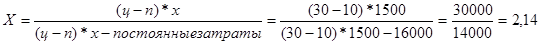 объем продаж при заданной прибыли, если предприятие планирует в следующем году получить прибыль в размере 15000 руб.,