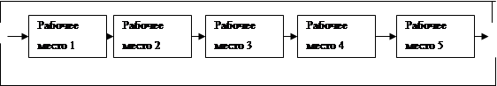 В задачи внутрицеховой (внутристадийной) организации производства входит сочетание производственных процессов, протекающих на рабочих местах, которые входят в одну стадию технологического процесса. Организационно такая стадия производства может быть оформлена как участок или цех. В том случае, когда участок организован по принципу предметной специализации рабочих мест, занятых выполнением различных операций по изготовлению одного полуфабриката, организация производства обеспечивает сочетание частичных производственных процессов в пространстве (распределение процесса между рабочими местами) и во времени (согласование начала и конца работы на каждом рабочем месте, определение порядка передачи предметов труда, выравнивание производительности и т.д.).