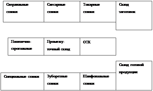 Обычно различают следующие виды цехов и производственных участков а) основные, б) вспомогательные, в) обслуживающие и г) побочные [1, c.24].