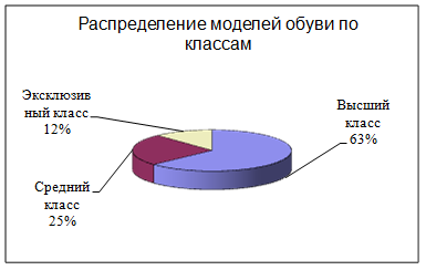 Выпускаемая партия обуви разделена на три категории: 1 категория (босоножки женские и сандалии мужские – 15% от общего объема производства); 2 категория (сапоги и ботильоны – 60% от общего объема производства); 3 категория (туфли весенне-летние и туфли летние женские – 25% от общего объема производства). Выпуск 2 и 3 категорий рассчитан на завоевание нового сегмента рынка.