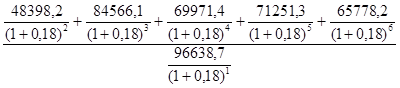 NPV = 1953,1 + 2563,5 + 1480,9 + 791,2 + 387,4 – 9062,5 = - 1886,4 (грн);