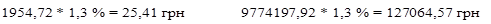 1954,72 * 33,2 % = 648,97 грн 9774197,92 * 33,2 % = 3245033,71 грн