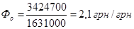 3) Фондовіддачу розраховуємо за обсягом товарної продукції: